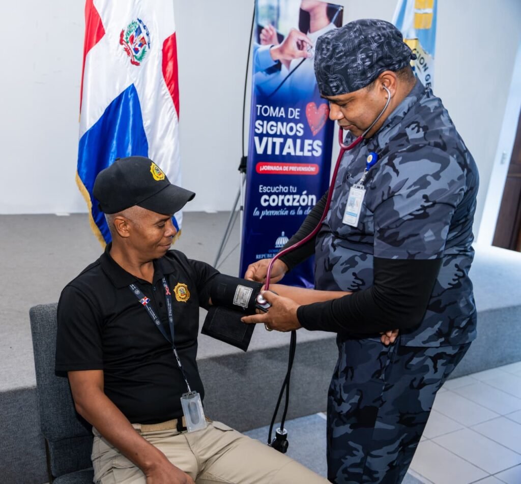 Santo Domingo.- La Dirección General de Migración (DGM) desarrolló una jornada de prevención de accidentes cardiovasculares, que incluyó evaluaciones para medir la presion arterial y signos vitales dirigida a sus colaboradores, con el fin de detectar de manera temprana enfermedades y promover una cultura de cuidado personal continua de la salud, en el entorno laboral.
