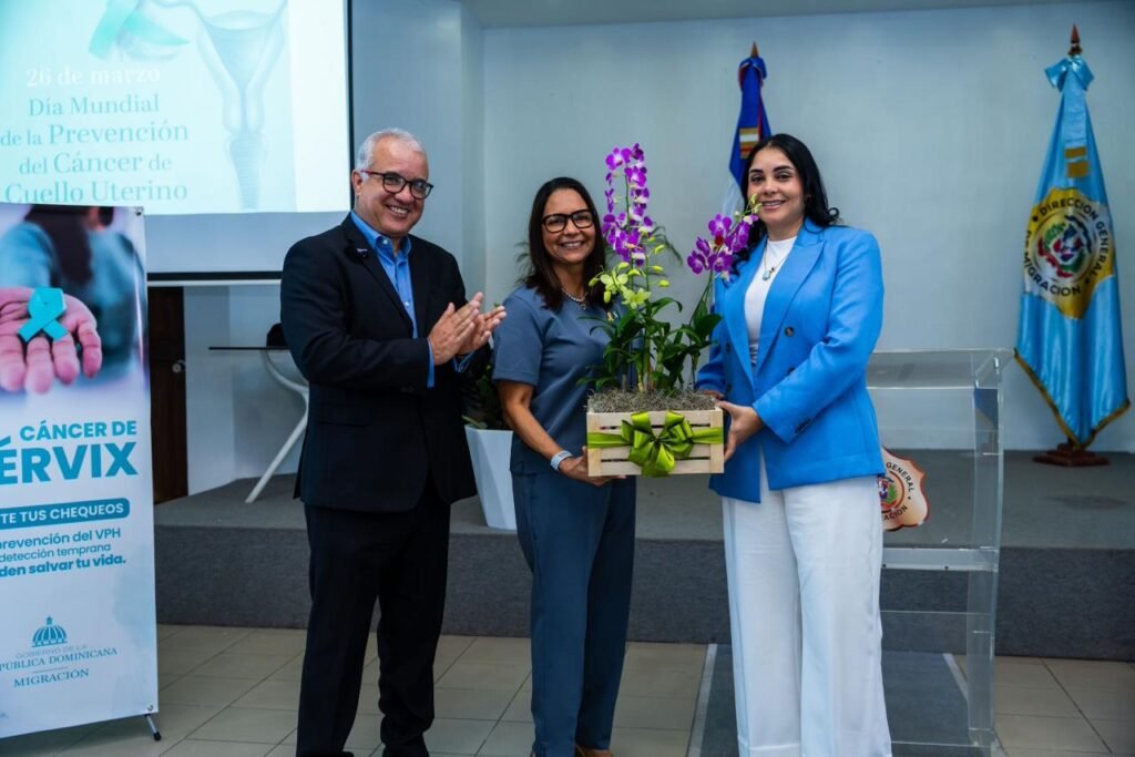 SANTO DOMINGO.– En ocasión del Día Mundial de la Prevención del Cáncer de Cuello Uterino, la Dirección General de Migración (DGM) organizó una charla de orientación sobre el Cáncer de Cérvix, dirigida en especial a su personal femenino, con el objetivo de promover la prevención y la detección temprana de esta enfermedad.