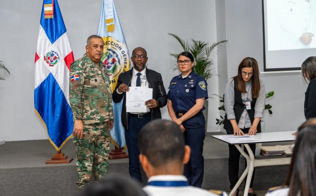Los nuevos oficiales de la DGM, recibieron los certificados que les acredita en sus nuevas funciones, luego de culminar con éxito el Curso especializado “Técnicas y Gestión Migratoria de la República Dominicana”, avalado académicamente por el Instituto Nacional de Migración y el cual tuvo una duración de 120 horas de capacitación.